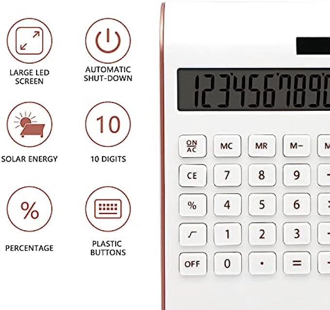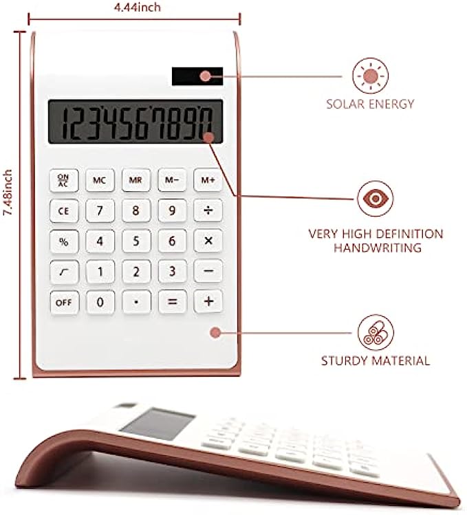 • Elegant and Slim Design: The rose gold office supplies and accessories desktop calculator has a sleek and stylish design, good-sized buttons, Large 10-digit LCD display, Pretty big one but still very light weight. Your calculation process will be faster and smoother with this calculator’s responsive buttons.